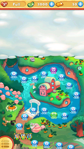 1、全球化农场设定突破传统消除游戏的场景局限,地图上分布着奶牛、浣熊等特色标识关卡。其中奶牛关卡可获得动物奖励,浣熊关卡则需与AI对手展开资源争夺。场景背景中精心设计的北极熊、猫鼬等动物群落,有效增强了世界观沉浸感。