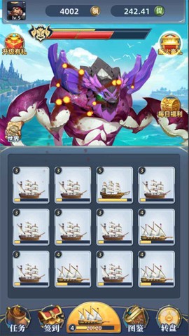 1. 知道我最爱什么吗?就是带着船队追捕巨型海怪时,要像老练的捕鲸人那样预判走位。当鱼叉"嗖"地命中鲸鱼要害时,整个屏幕都会爆出金币特效,这种操作成就感在手游里真不多见。