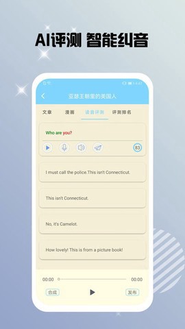 语音训练系统整合了剑桥英语发音评估技术,覆盖48个音素的正音训练,七大职场场景对话模块采用情境式学习法,每单元包含角色扮演与AI即时反馈。