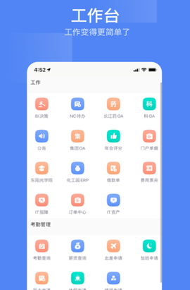东阳光门户App是东阳光集团专为内部员工研发的一体化移动办公平台,深度融合办公管理与生活服务功能。该软件通过数字化手段重构工作流程,显著提升组织协同效率,使员工能够随时随地处理OA/NC系统待办事项、查阅个人考勤数据及薪资明细,同时集成快递查询、在线会议等实用功能,实现工作场景的全方位覆盖。