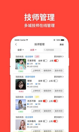3. 技师管理骚操作特别多,谁在摸鱼谁在爆肝,状态看得清清楚楚。派单就跟王者荣耀选英雄似的,直接给技师安排得明明白白。