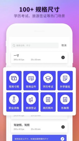 3、尺寸库超级全,无论是一寸、两寸这种常规尺寸,还是什么小一寸、小二寸等特殊要求,都能直接套用,再也不用自己算像素了。