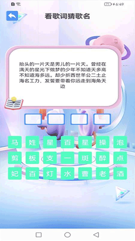 2、玩法特别上头,光是看歌词猜歌就能玩半天。还有那种内涵段子配歌曲的,简直笑死个人。谜语、电视剧名字、歇后语,应有尽有,脑洞大开的那种。
