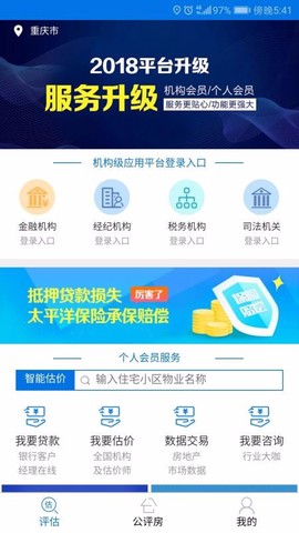公评网是一款专注于不动产价值管理的应用程序,真的是一款绝对值得下载的工具。你可以从多个机构部门的入口中自由切换,金融机构、经纪公司、司法还有税务部门都能轻松登录不同专区,使用起来真是太方便了!对于个人用户来说,这里还有专门的服务区域,提供各种功能,比如我要贷款、我要估价和数据交易等服务图标。从“我要贷款”功能中,你能找到银行的经理人进行咨询,尽情了解贷款的各种业务及资质要求是什么;而“我要估价”则允许你提交想要估价的资源内容,从而查看目前这些产品的市场售价标准;在房屋服务中心,你还可以使用“我要买房”功能,向意向物业对象发出卖房询价,等待价格回复,让购房过程更为顺利。