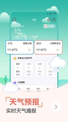 1、提供实时天气查询功能,作为一款专业的移动天气辅助工具,其操作逻辑清晰明确,能够为用户带来高效便捷的天气信息获取体验。